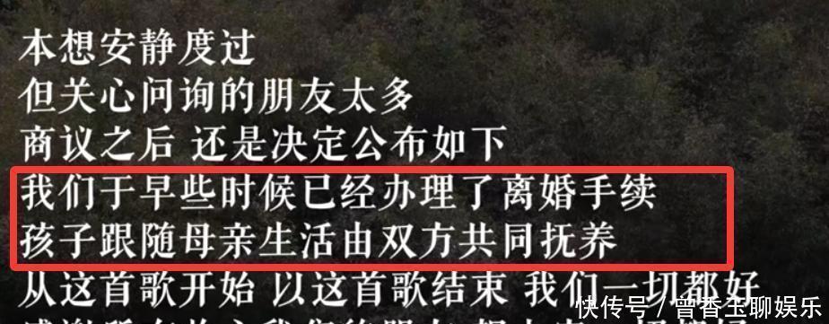 海哈金喜本人没露面:只是打了一段字:原本打算低调一些的,结果关心问候的朋友太多,商量过后还是决定告诉大家了,我们早就办了离婚的手续。孩子由母亲抚养,双方共同承担抚养责任。